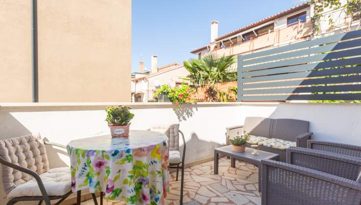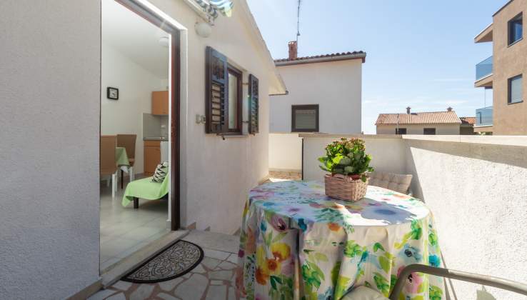 Apartment Rozi for 2 persons in Porec, only 600m from the beach and 10 minutes from the city center, with a balcony, air conditioning.