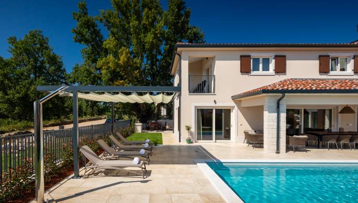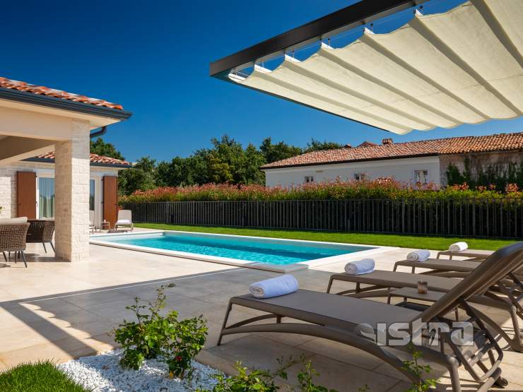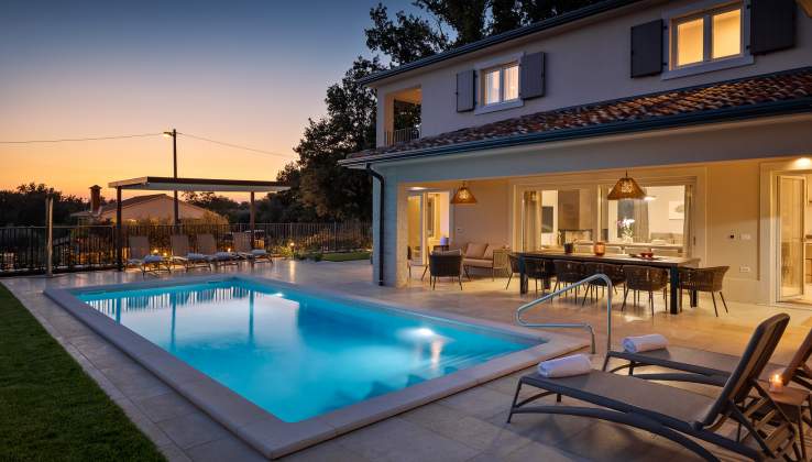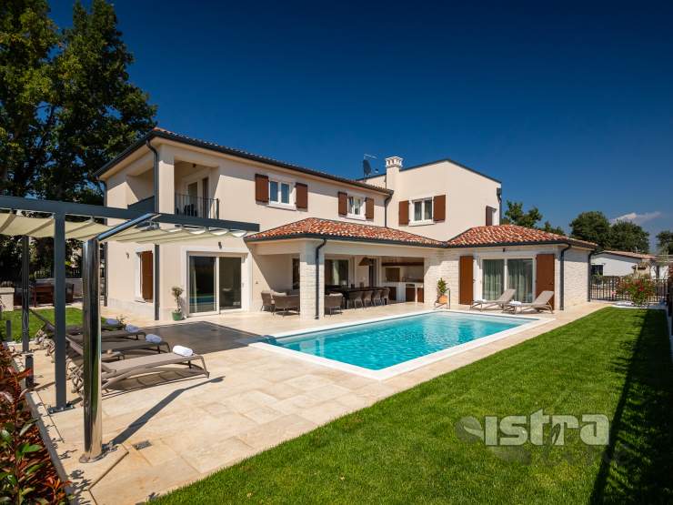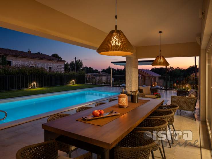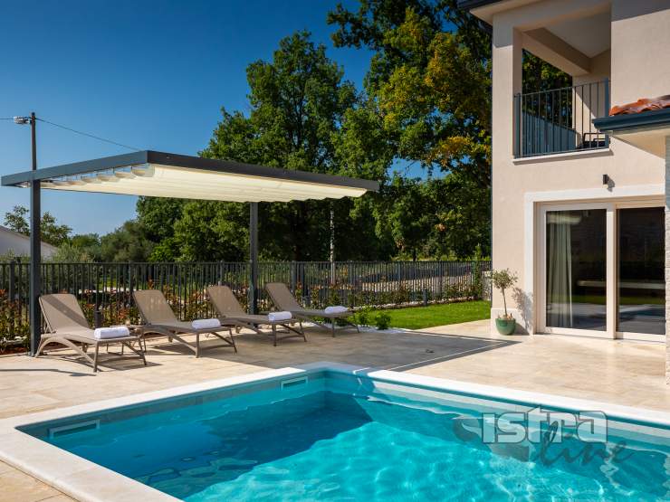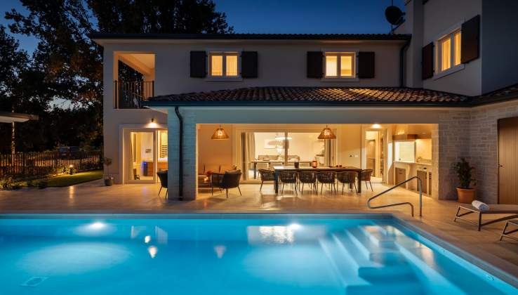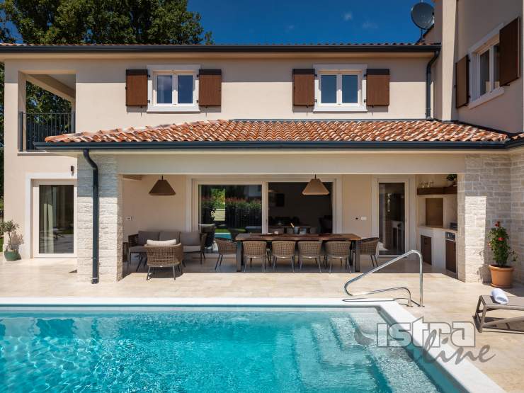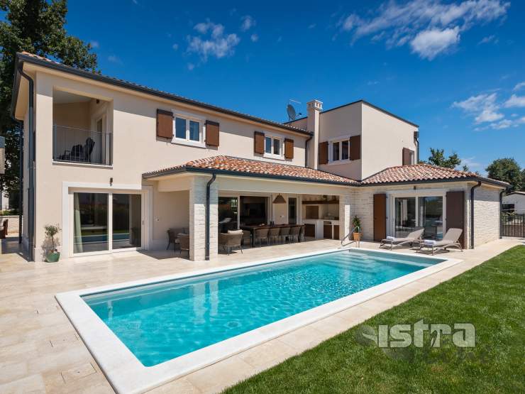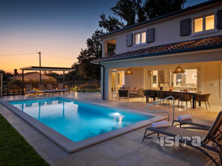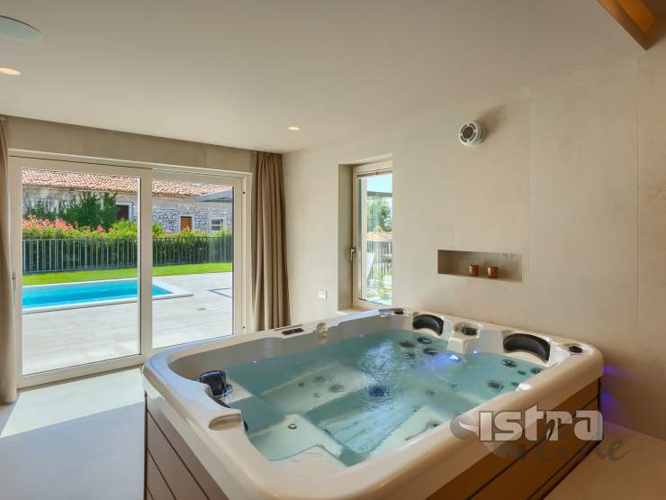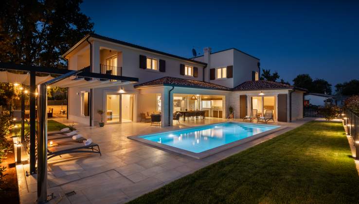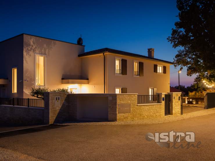 Luxury villa for 8 persons with swimming pool, whirlpool and sauna, near Porec and the beach with a panoramic view of the sea.