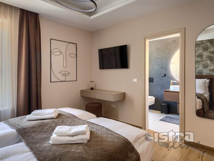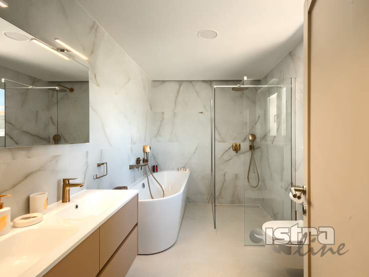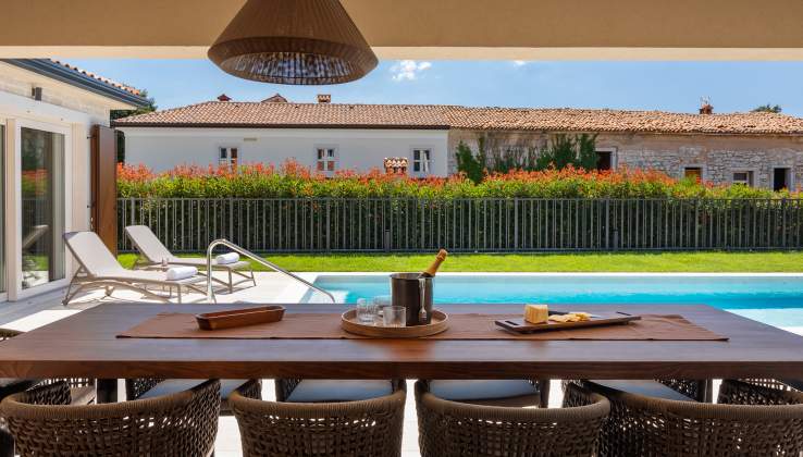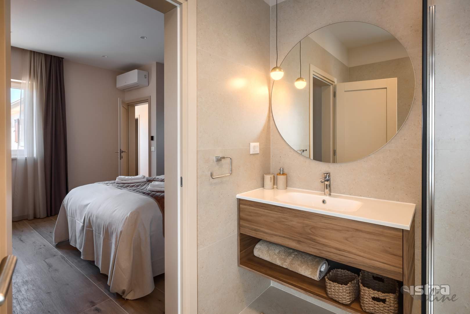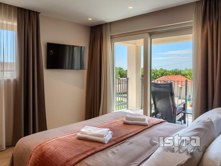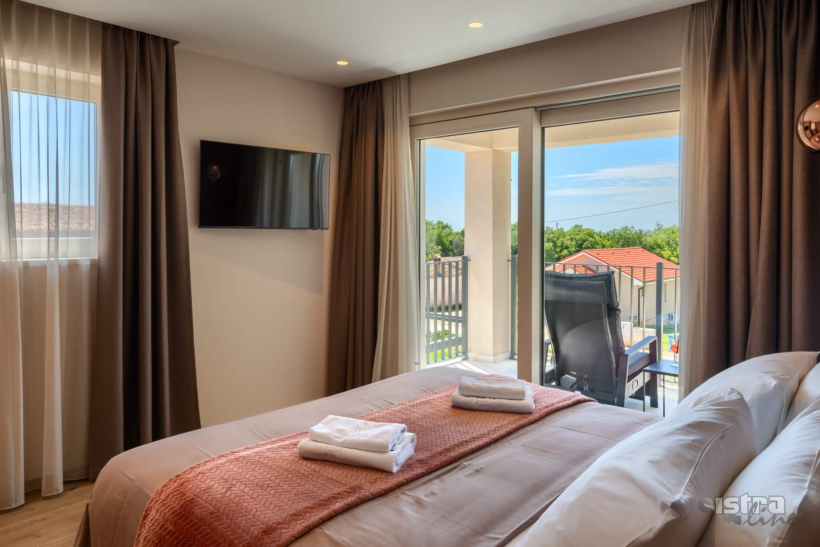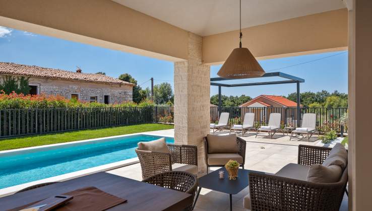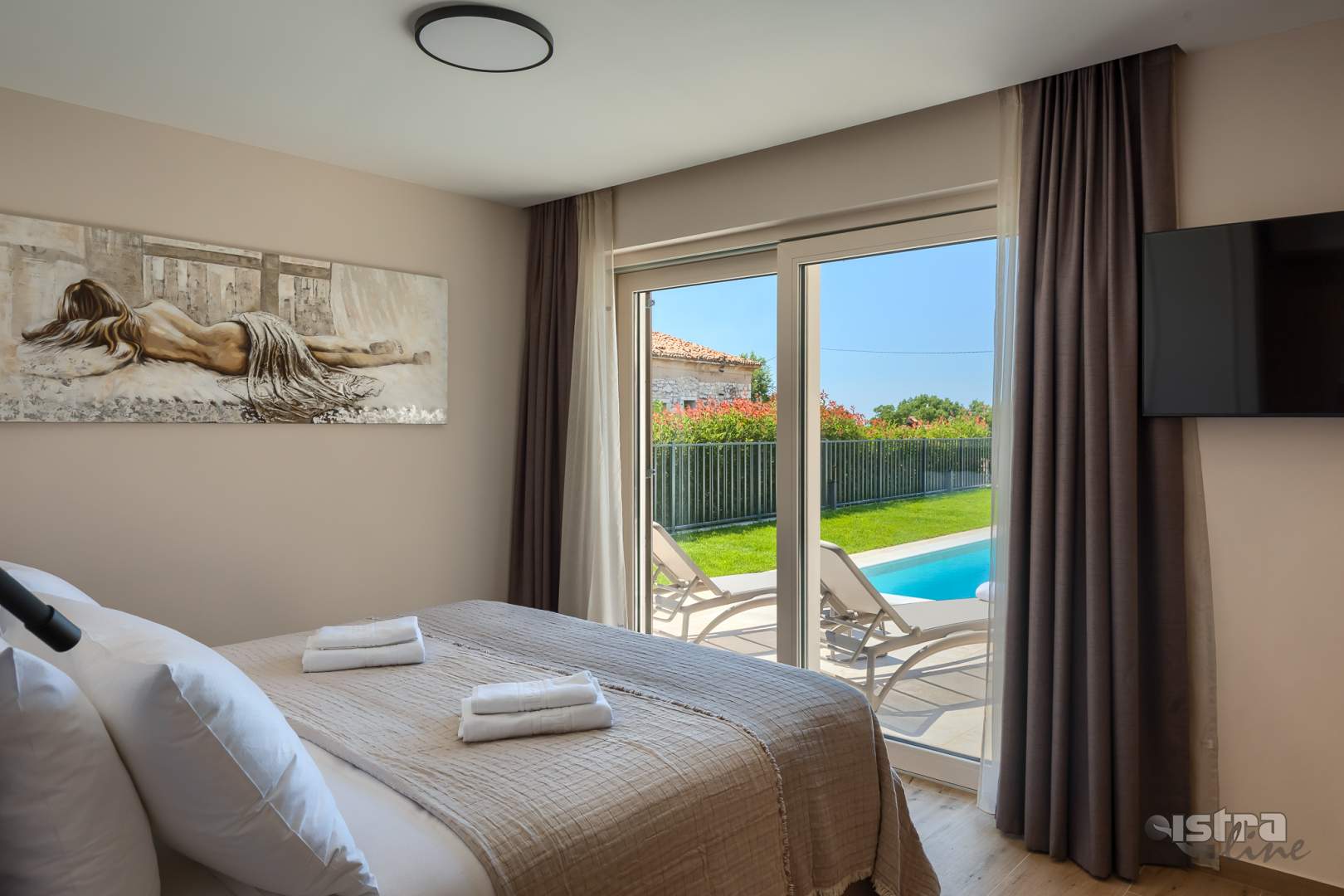 Luxury villa for 8 persons with swimming pool, whirlpool and sauna, near Porec and the beach with a panoramic view of the sea.