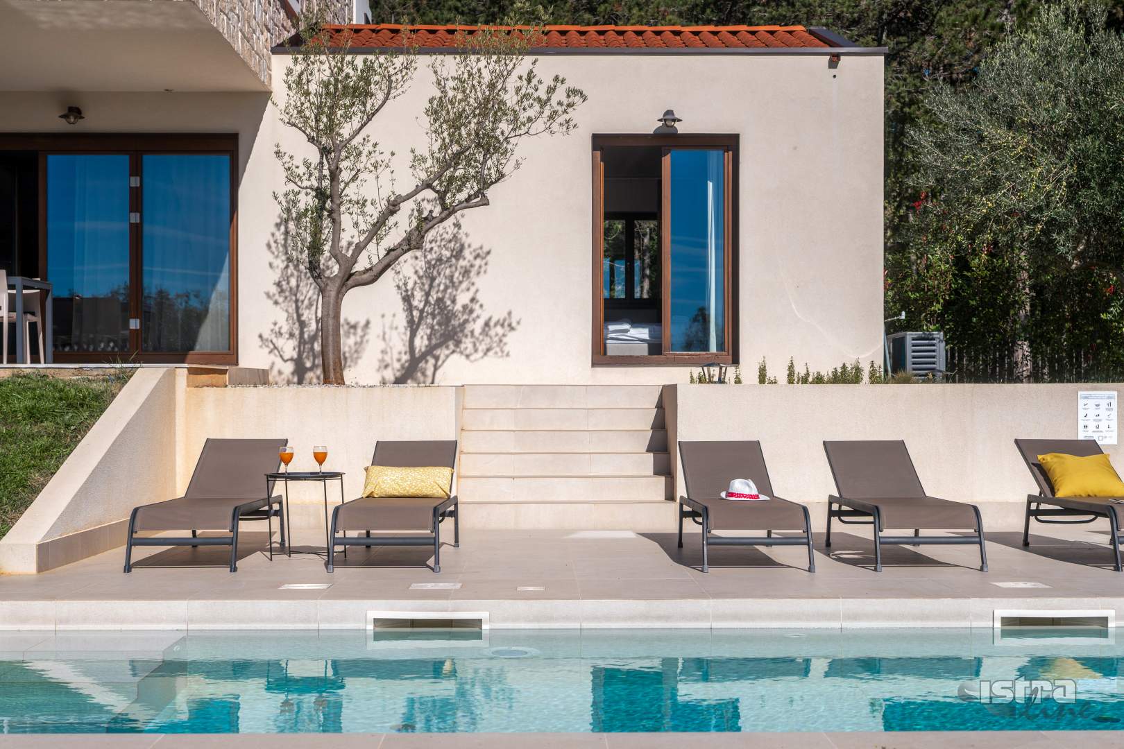 Villa Casa Venus za 6 osoba je moderna, novoizgrađena kuća za odmor, stambene površine 160 m2 i prostire se na dvije etaže. U prizemlju se nalazi prostrani dnevni boravak s blagovaonom i izlazom na terasu, bazen i vrt, potpuno opremljena kuhinja, spavaća soba s kupaonom i izlazom na bazen, te odvojeni wc. Na 1. katu se nalaze 2 prostrane spavaće sobe, svaka sa svojom kupaonom i lijepim panoramskim pogledom na more. Cijela kuća je klimatizirana i ima jak Starlink internet.