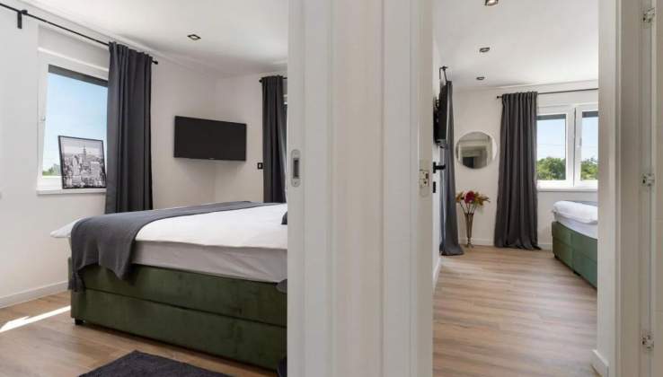 Na prvom katu ova prekrasna vila nudi tri spavaće sobe, svaka s vlastitom kupaonom i pristupom balkonu sa sjedećom garniturom. Na drugom katu nalaze se finska sauna i prostrana krovna terasa s ležaljkama, idealna za uživanje u zalasku sunca i panoramskom pogledu na more. Na raspolaganju su i četiri bicikle. Ako tražite zaista poseban odmor u luksuzu, Villa Diva Exclusive je pravi izbor.
